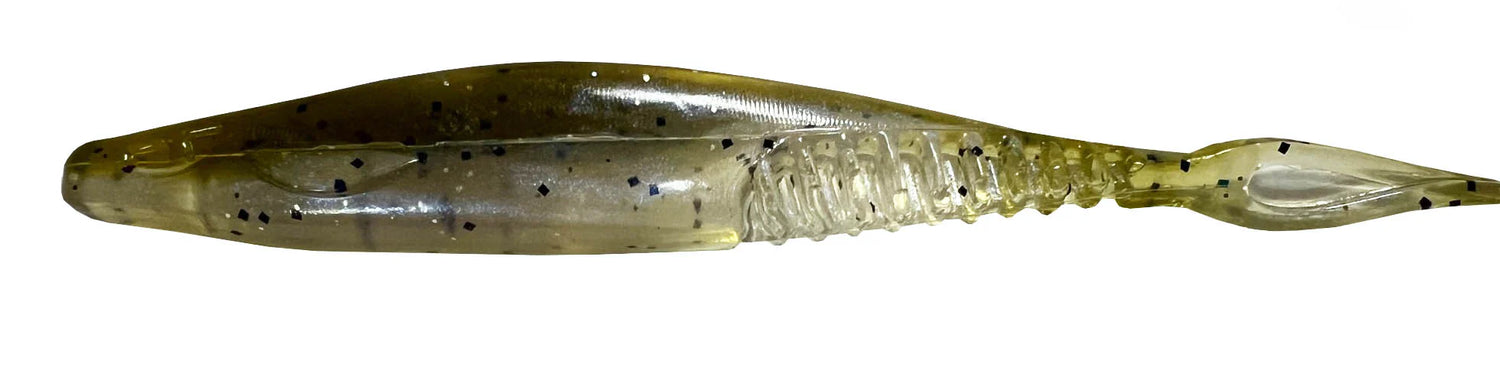 The Don is a 5" minnow built to change the way you mid stroll. Poured in the USA, and specifically designed to work on all species of freshwater fish. The unique shape of all sides of the bait along with the wedged tail all have been fine-tuned over years on the tournament trail to create the perfect mid strolling minnow style bait. From plastic that is slightly softer to a proprietary 0% salt formula that allows for overall neutral buoyancy of the bait... All of this has had great care and testing to make sure this is the best minnow ever made. All of these factors contribute to a crisp clean rolling action. This is the bait that was hand poured late at night for years that helped win some of the top tournaments in the country and was the “secret” that was never shown until the it was shown in the Top 10 Baits article in March of 2024 in the Toyota Series event on Kentucky Lake as the winning bait. It's time to change the way you mid-stroll with The Don!